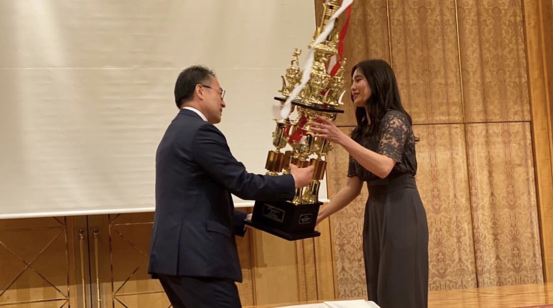 国際空手道連盟 極真会館 松井章奎館長から、永吉美優さんへと授与された巨大なトロフィー…