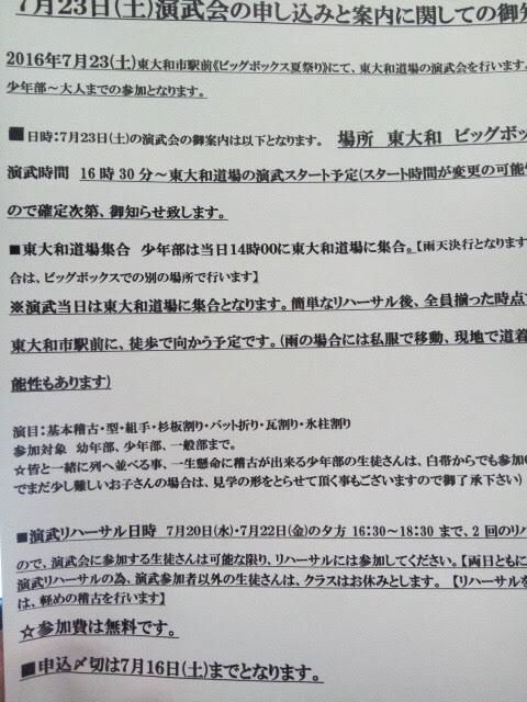 《7月23日(土)ビッグボックス演武会に関しての御知らせ》