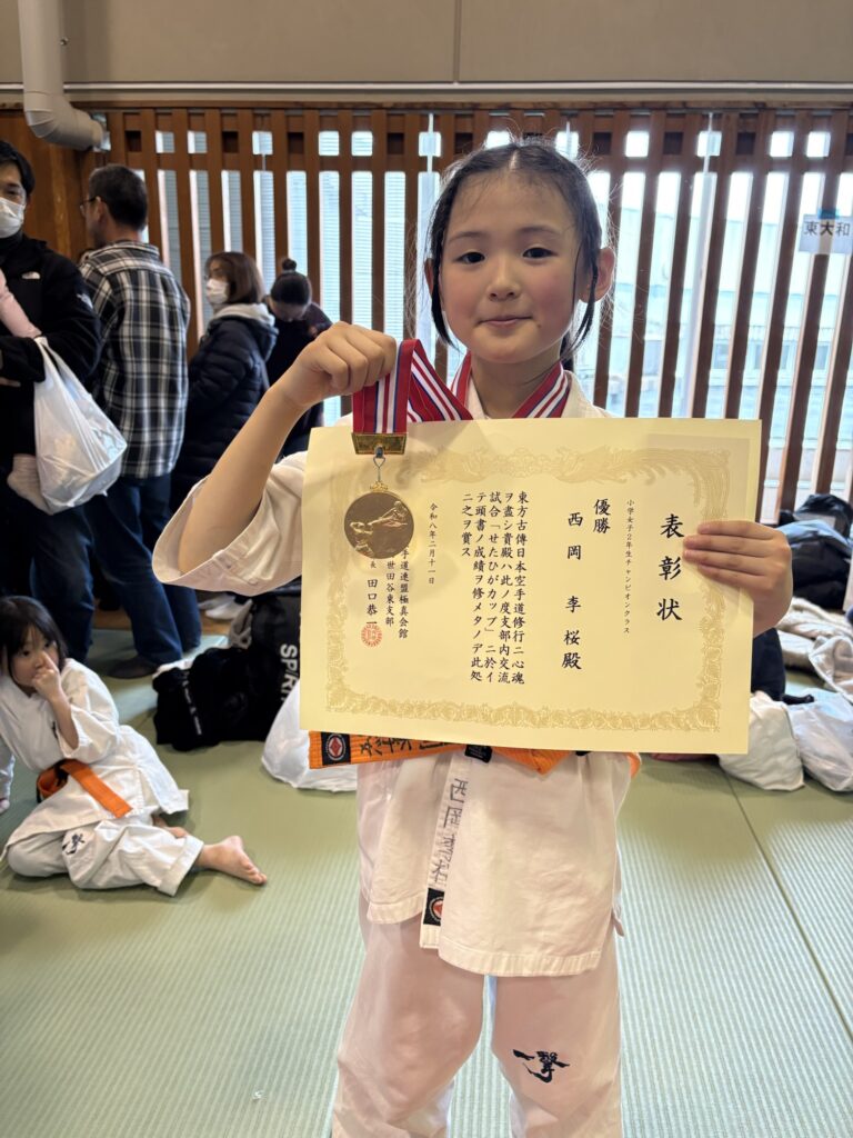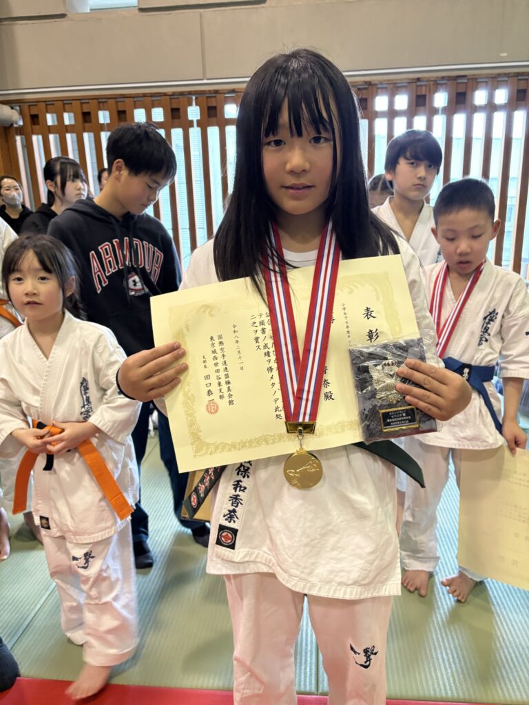 ◎現在小学5年生ながら、6年生チャンピオンクラスへと挑み、その強さをしっかりと見せ付けて圧巻の優勝を飾った。必ず勝つと信じていた。仲間達や幼い後輩達を優しくサポートしたり元気付けられる頼りになる存在であり、明るく前向きに稽古に取り組む姿勢、日々の努力の積み重ねを評価して今大会の敢闘賞を彼女に渡した。(せたひが賞/敢闘賞の受賞は2度目)