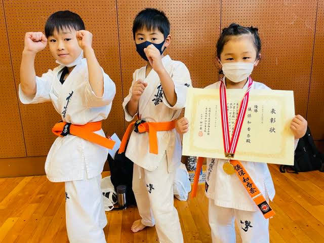 山崎心音君も、組手試合で初優勝。(組手試合初の1勝利を獲得すると、その勢いで更に勝ち上がり、見事に初優勝を遂げた)