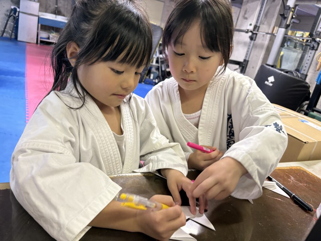 クリスマス会の準備。【キ◯ィちゃんの◯説】 折り紙を使って製作中。 女の子達ならではの様子。 何とも可愛らしい。 【ねぇ、知ってる?キティちゃんてね、幽霊なんだよ…】と、葵菜ちゃんが教えてくれた。 【え!?そうなの??…】と、彼女へ。 今日、本当に初めて知った。 折り紙を折ってから、キティちゃんの顔を描いていた彼女達。 とても上手。 クリスマス会の飾り付けとして壁に貼り付ける作品になる。 道場の飾り付けは全て子供達がやってくれている。 みんな楽しそうで何より。 2024/12/21 その他の記事を読む 前の投稿2024/12/20。【極真空手/東大和道場/金曜日少年部クラス&一般部クラス】【武道/心身鍛錬】 次の投稿2024/12/21。【極真空手/東大和道場/土曜日少年部クラス】【高◯沢龍君&光鷹君】 投稿公開日:2024年12月22日