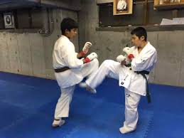 1学年年下の後輩達と手合わせをする拳三君。(翔太朗君、レノン君、元輝君と組手稽古)