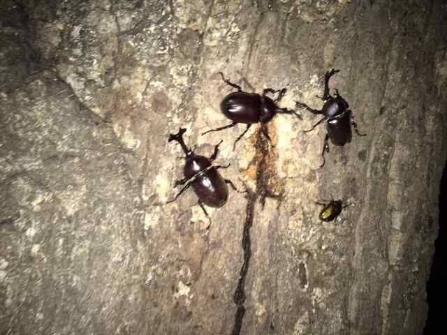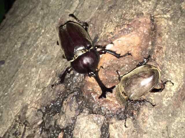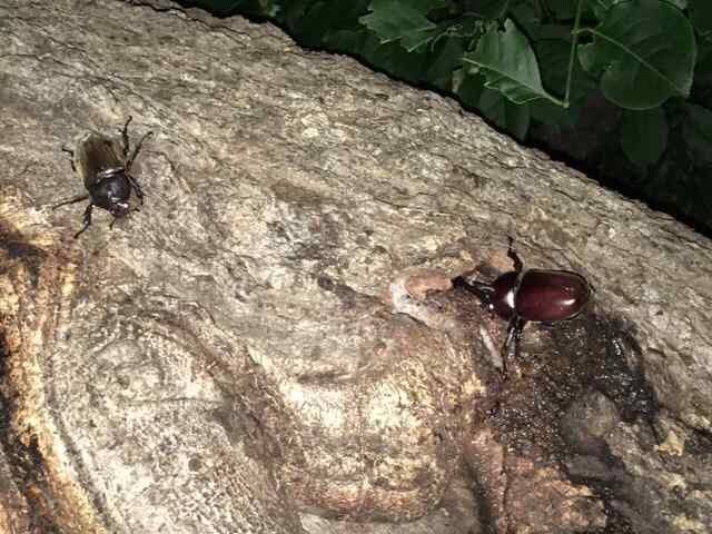 カブトムシの雌と小さな雄も、殆どを放置して来たが堪えきれずに…イカツイ雄達と、彼らの子孫を残す為に雌を数匹持ち帰ってきた。
