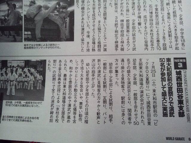 ワールド空手。 ワールド空手【第11回全世界大会特集号】 今日から発売されています。 ワールドユースエリート大会 15~17歳高校生女子で優勝した永吉美優さんの記事、カラーページで出ています。 ビッグBOX夏祭りでの演武会の記事もあります。 第11回全世界大会入賞選手達の記事は、凄く興味深い。 その他の記事を読む 前の投稿水曜日少年部。【成長】《木〜日少年部クラスのみ、御休みとなります》 次の投稿12月。 投稿公開日:2015年12月10日