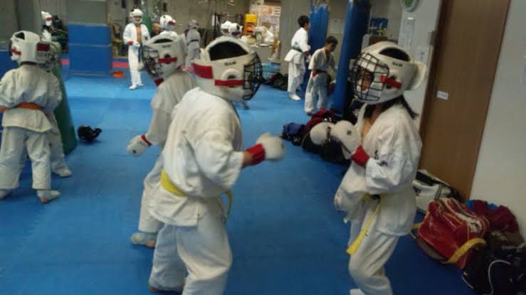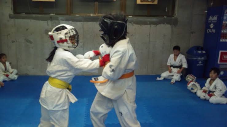 年末の組手稽古での、練習試合で、千賀ちゃんに激しい組手で対峙した、ひなたちゃん。(5年生)