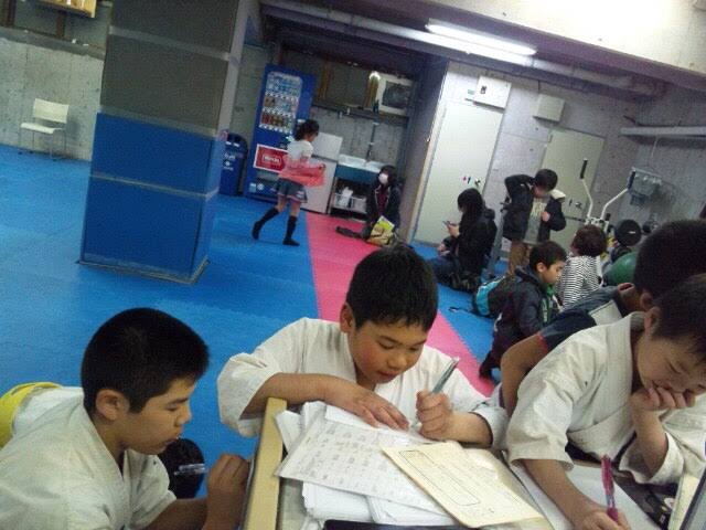 1級審査を受けた、雨宮伶空君、星野悠久君の筆記審査が、かなりの量なので、彼らは約1時間をかけながら、頑張って書き上げました。