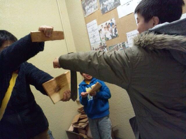 伶空君、リク君は使用済みの短くなった割れにくい板も、しっかり割っていた。