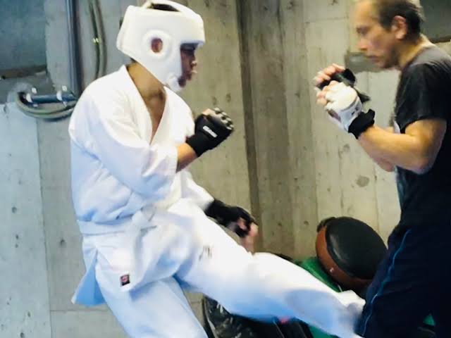 サウスポースタイルから繰り出す、丹波さんの左上段廻し蹴りも光るが、組手センスを感じる。