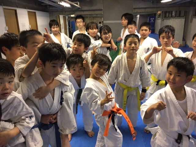 白帯の幼年部達から高学年、中学1年生までの生徒達が沢山集まりました。