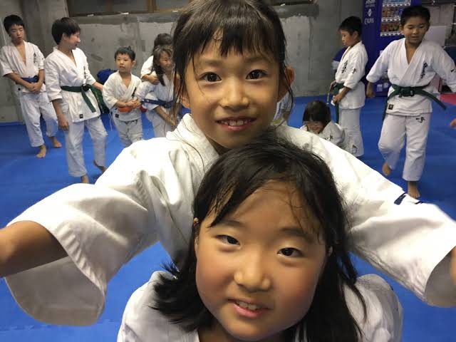 初めての軽いスパーリングに挑戦した美緒ちゃん。(写真上・小学2年生)