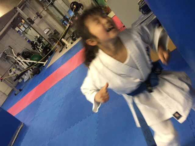 まだ空手を始めて、半年間の彼女達ですが、先日の支部内交流試合では、初出場ながら、二人とも勝ち上がり、心優ちゃん(お姉ちゃん)が準優勝に輝きました。