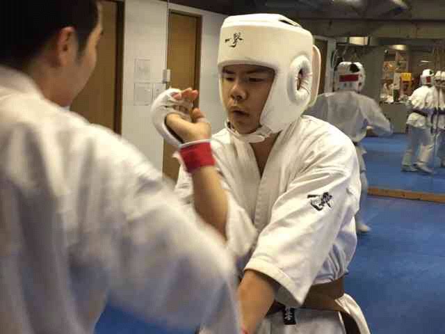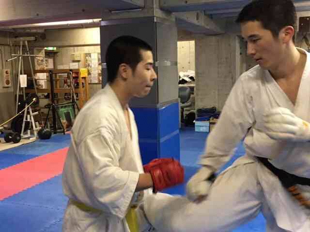 国際大会に向けて最終調整の組手稽古、追い込みとなる坂本元輝君。