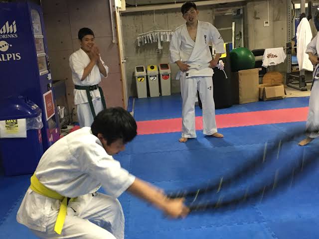 審査の見極めを中心に(内山由暁君の立ち方、礼法、基本、移動、型を全員で)、皆の稽古内容の確認と反復稽古、フィジカル、体幹、ロープトレーニングまで。