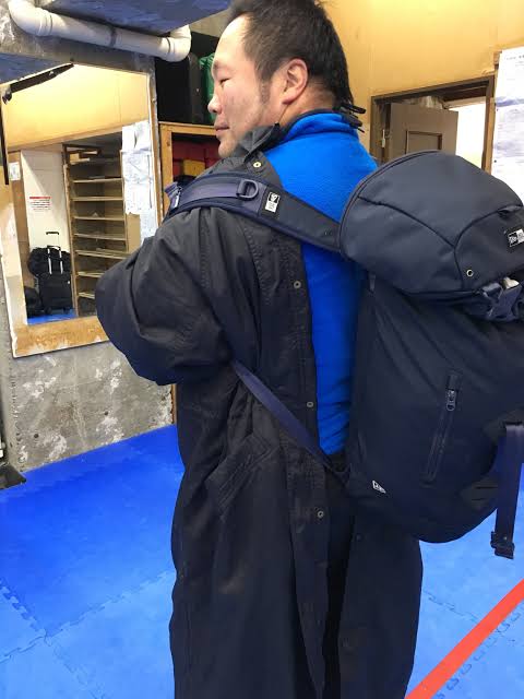 『…そして、こうして、リュックを背負うと、ほら完了!(逆に着たコートが、はだける事も無い)』と、呟く佐野先生…