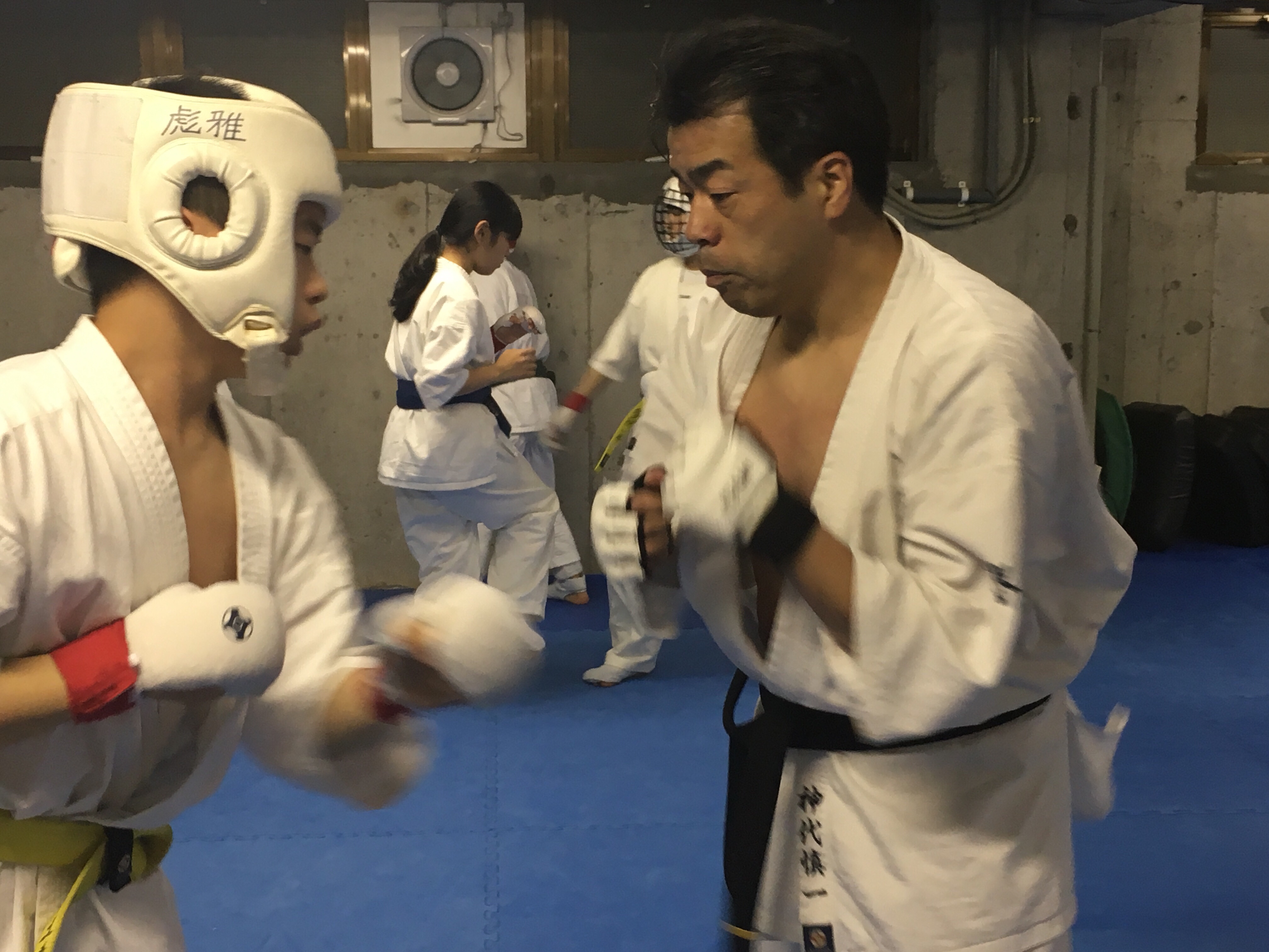 久しぶりに稽古に来てくれた川内翔太朗君、体が大きくなり、更に強くなりそうな予感がありありと漂う。(センスも抜群で、いざ稽古をすると、空手に対する武道としての意識も凄く高い)