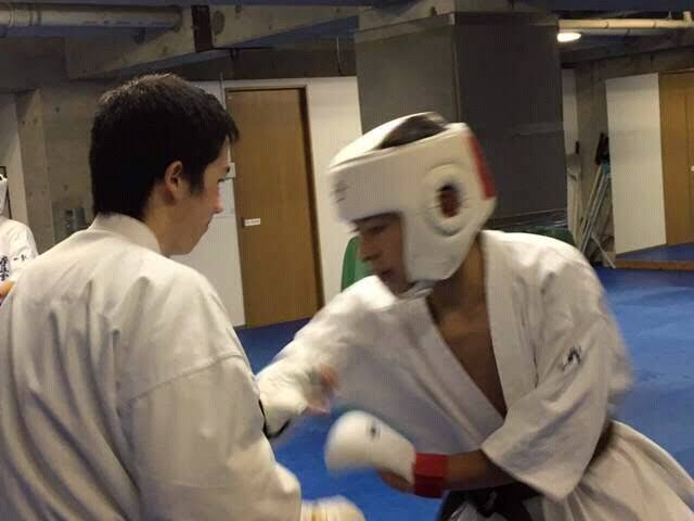 久しぶりに稽古参加の川内翔太朗君、スパーリング、組手稽古では多田将太朗君に果敢に挑んだ。