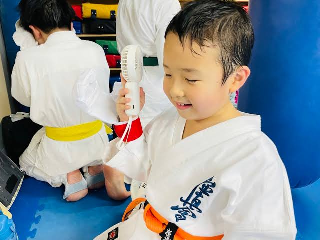 涼しい…。 先日、土曜日2クラス目の少年部クラスでの組手稽古後に。 先輩達と一緒に、厳しい稽古を最後まで頑張った腰塚陽太君。 稽古後、汗だくになりながらも何かを片手に、とても気持ち良さそうにしていたから直ぐに目が留まり。 ハンディ・扇風機を片手に涼んでいた。 稽古も常に一生懸命だし、とても明るい性格だ。 今年は初の組手試合にチャレンジ出来ると良いなと思う。 その他の記事を読む 前の投稿2021/8/28。【極真空手/東大和道場】【土曜日少年部クラス】【一般部選手稽古】 次の投稿2021/8/29。【日曜日少年部クラス】【多田指導員・一般部クラス】 投稿公開日:2021年8月30日