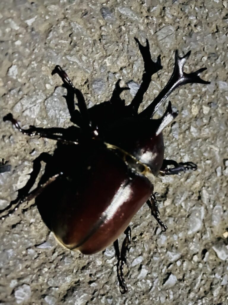 道路に落ちていたカブトムシを何匹か救った。(道端に落ちてきたカブトムシは、拾うか木に戻してあげないと、だいたい車に轢かれてしまう…)