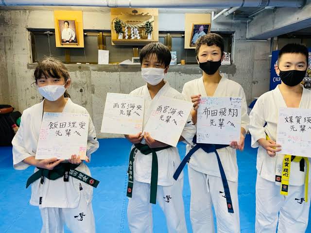 幼年部、少年部の後輩達が書いてくれていた色紙を渡した時の写真だ。(色紙には裏表にびっしりと文字が書かれていた)