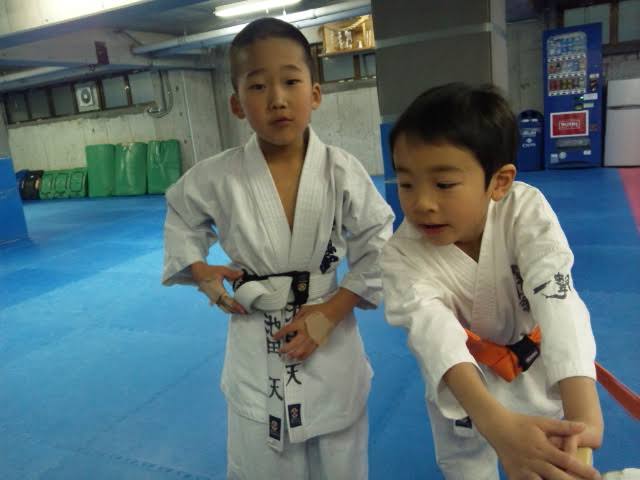 伊織君、天君、元々同じ小学校の同級生でしたが、道場へ入門して、たまたま御互いを知り、更に仲良しになりました。