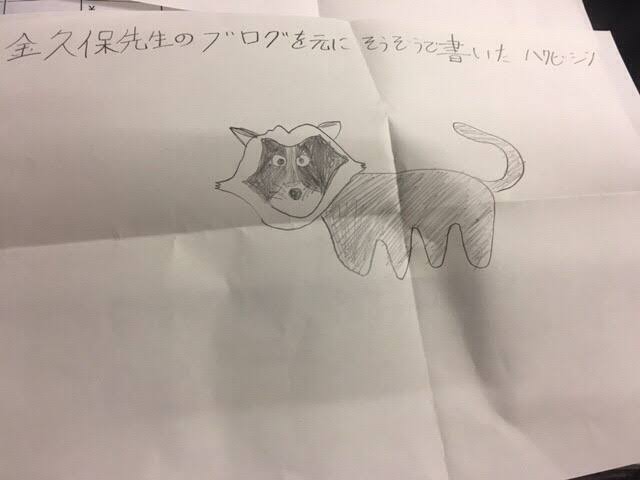 『…先生…これ描いてきました…先生のブログを元に想像で描いた【ハクビシン】…』