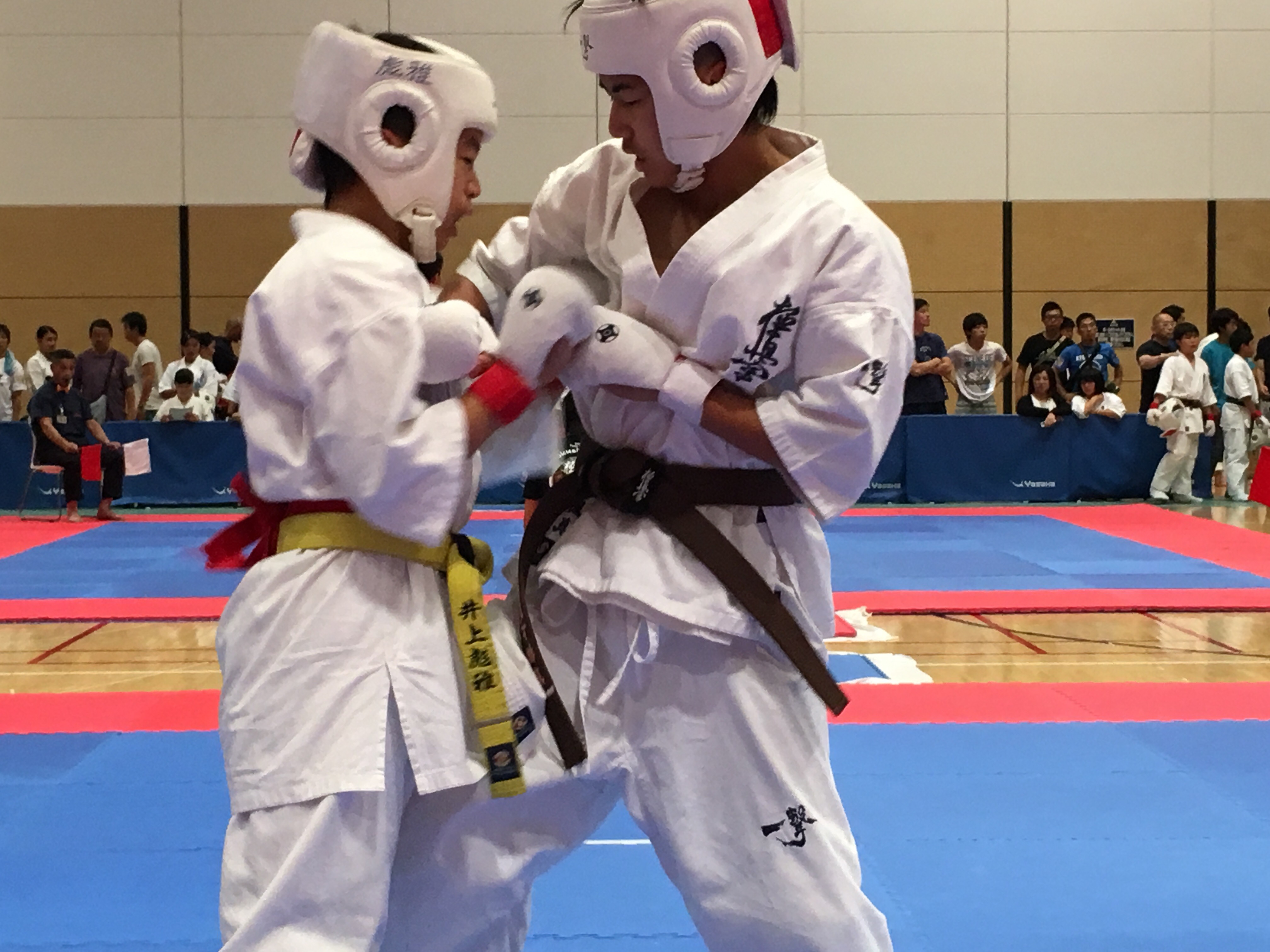 2017東日本空手道選手権大会 速報【午後の部】 ■中学2・3年生男子-55キロ級 井上彪雅【2017支部内特撰クラス優勝】の2回戦。 中学3年生の強豪選手との一戦。 大きな相手の懐に入り、激しい打ち合いとなる。 パワーも打たれ強さも、気持ちの強さも増している。 最後の最後まで必死に打ち合いを挑みながら、ラストは何発も上段廻し蹴りを放つ。 本戦0ー3判定敗退となるが、過去に無い素晴らしい大健闘となった。(関東大会以上の試合での初勝利にも成功した) 良い試合だった。 よく頑張りました。 その他の記事を読む 前の投稿2017東日本空手道選手権大会 速報【午後の部】 次の投稿2017第25回全関東空手道選手権大会 速報【一般選手権 無差別級】 投稿公開日:2017年7月17日