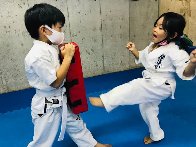 初めての空手の稽古を堪能していた。(とても筋がいい)