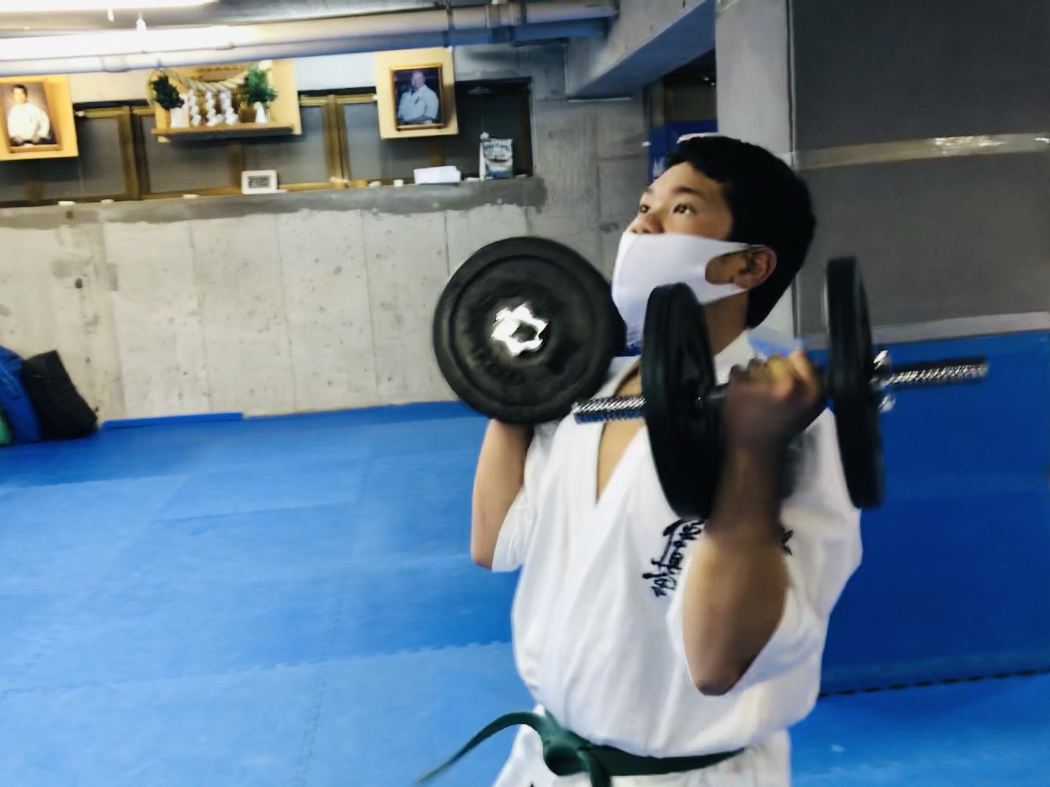 縄跳び、サーキットトレーニング、帯引きダッシュ、ウエイトトレーニング、補強稽古と厳しいメニューを分けながら集中して積み重ね。