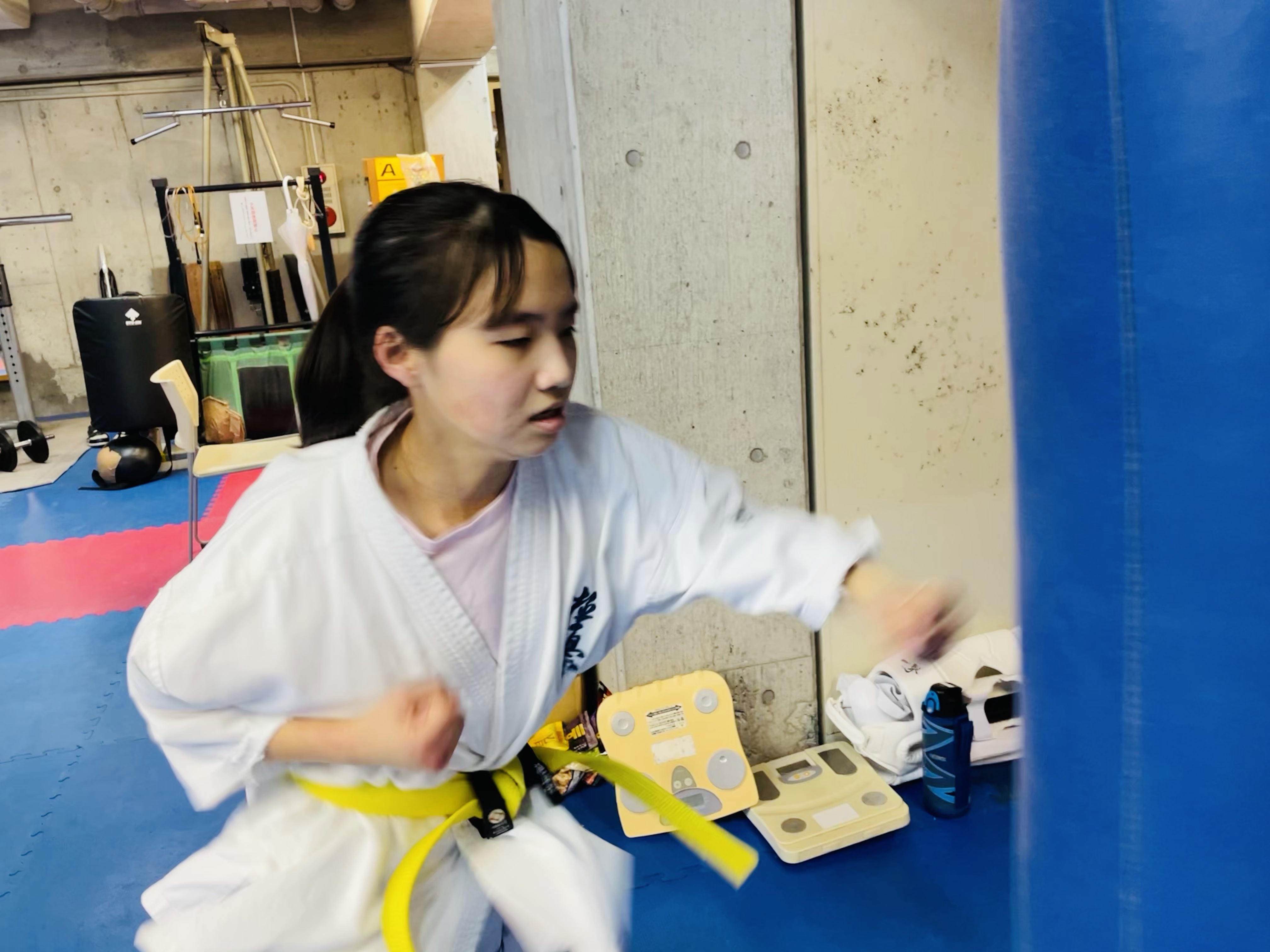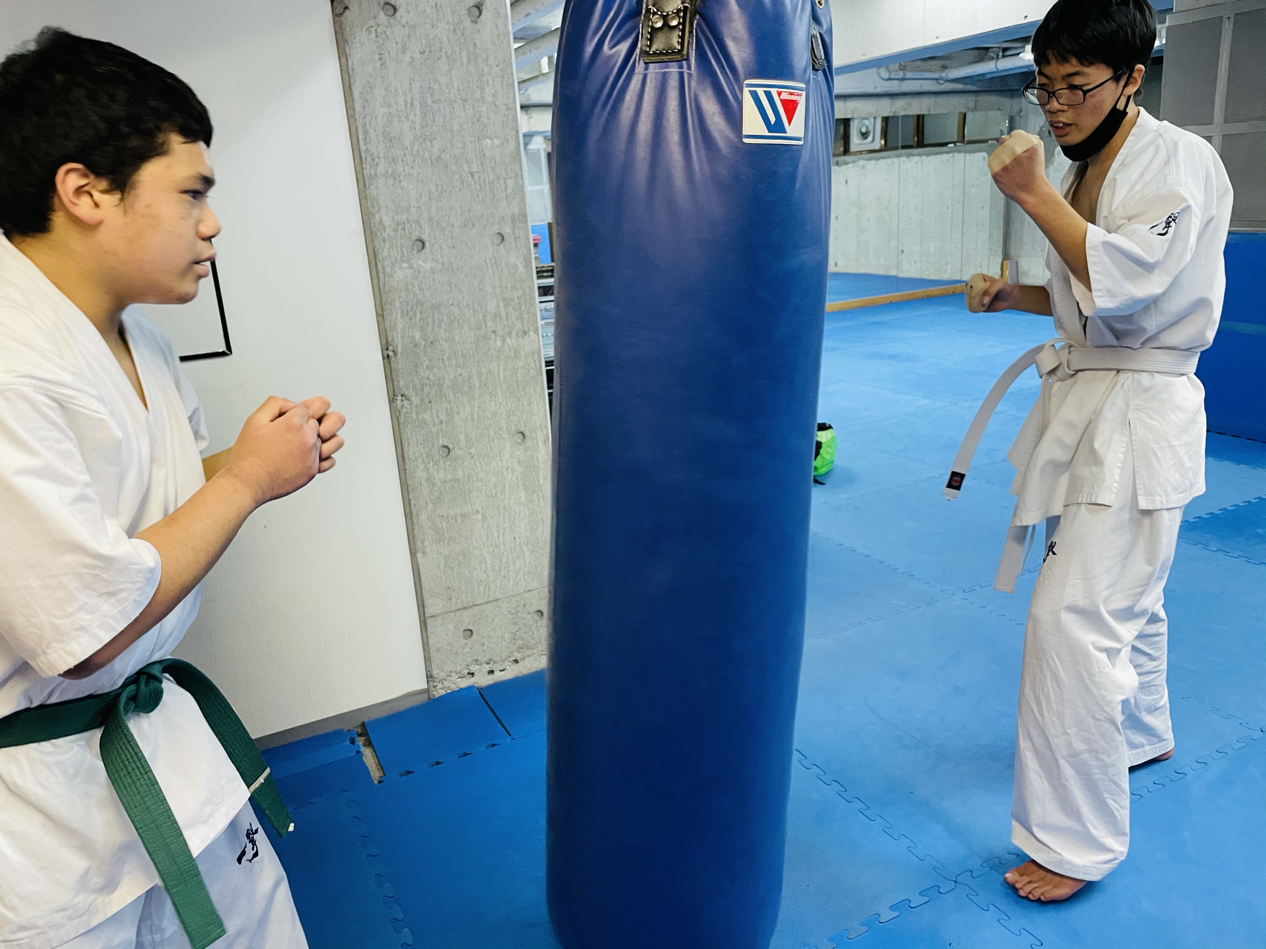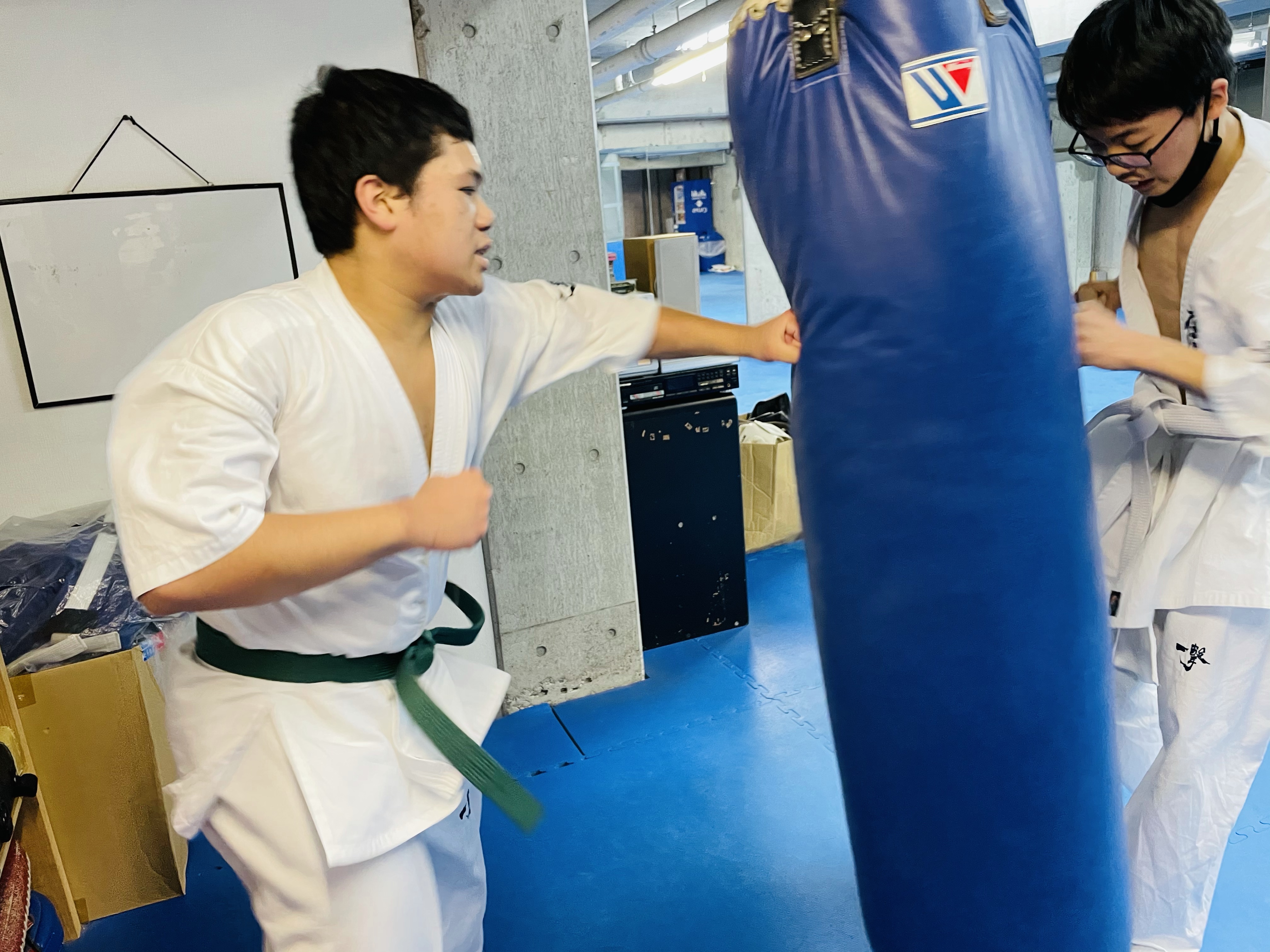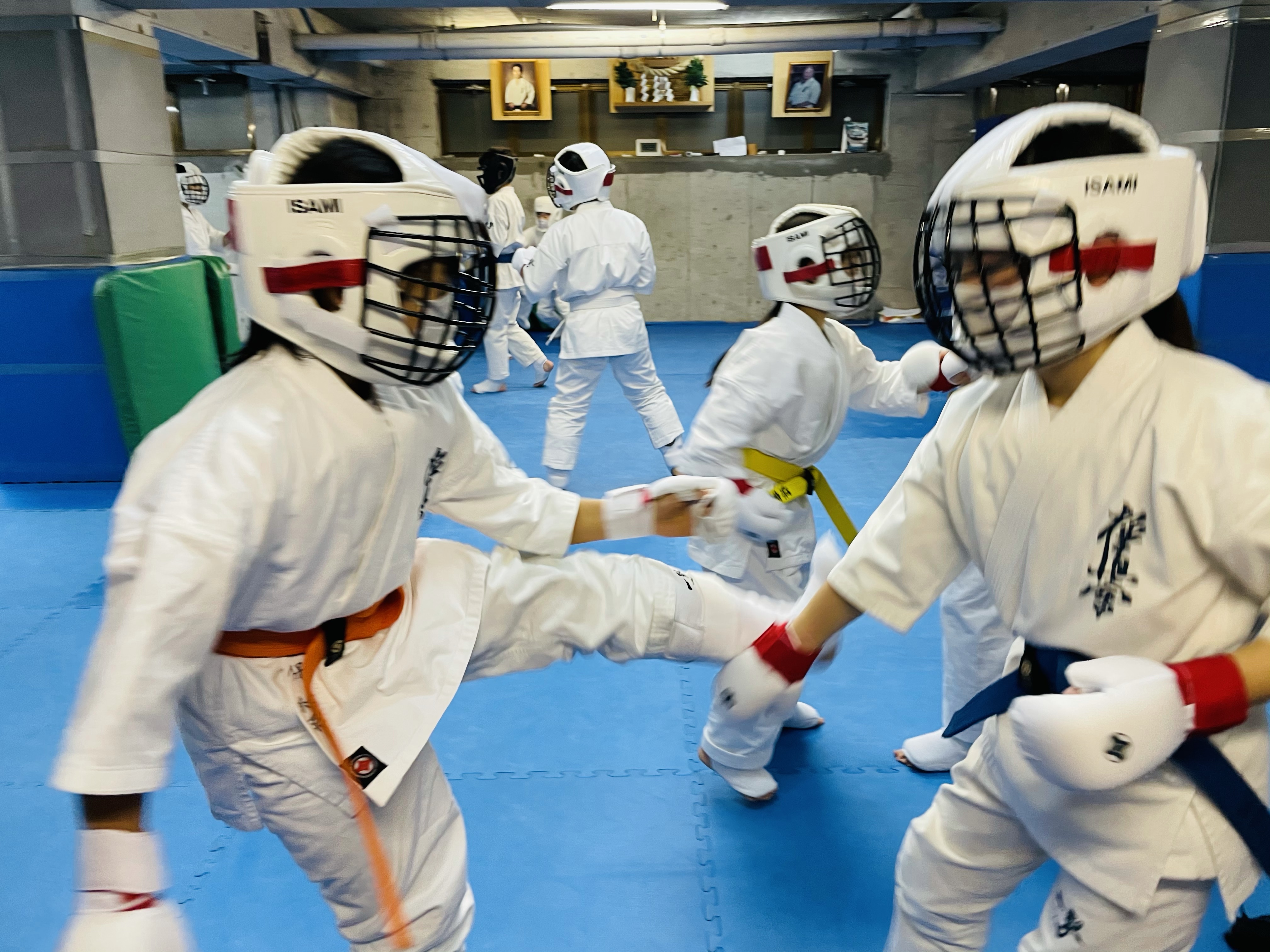 既に受け返し、軽いスパーリングを積み重ねてきていただけに、今日は先輩達と一緒に最後まで組手稽古にもチャレンジした。