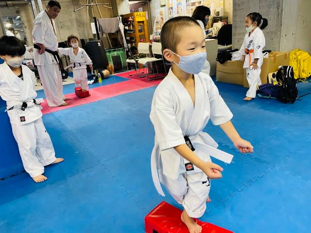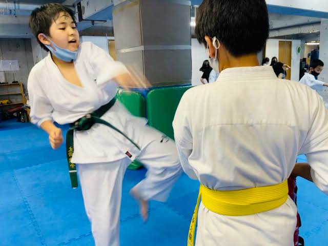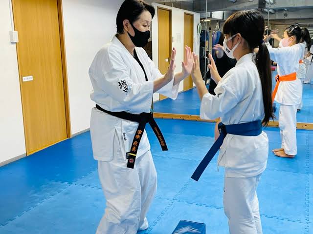 小学6年生の儀保ココネさんが、空手体験に来てくれた。(先輩となる儀保結菜さんが色々とリードしてくれた)