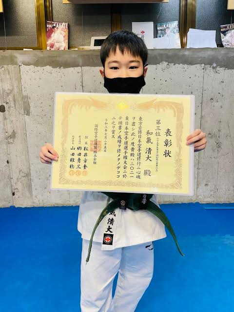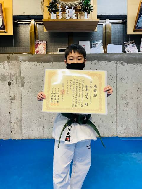 【2021東日本青少年大会/小学5年生−35キロ級・第3位】に入賞した、和気清大君に賞状が届いた。(3回戦となる準々決勝戦では、西日本大会王者に勝利してのベスト4進出となった)