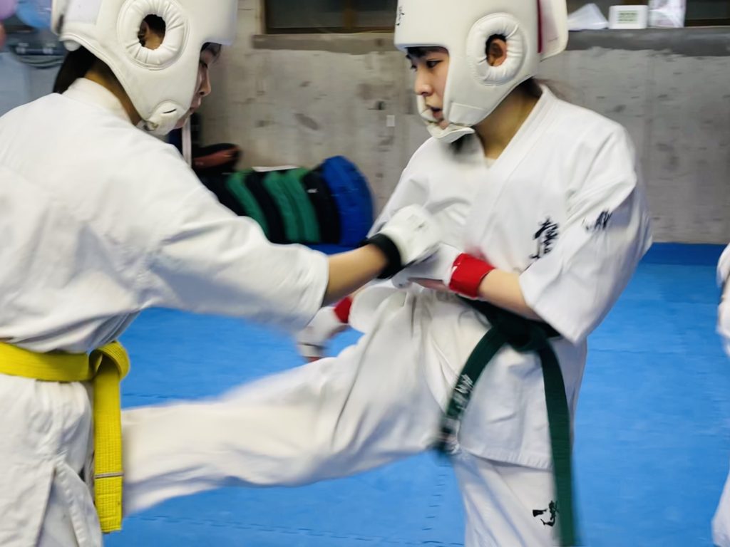2学年年下の大舘杏紀さんとも、けっこうガチの組手で手合わせした。