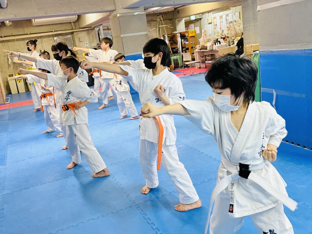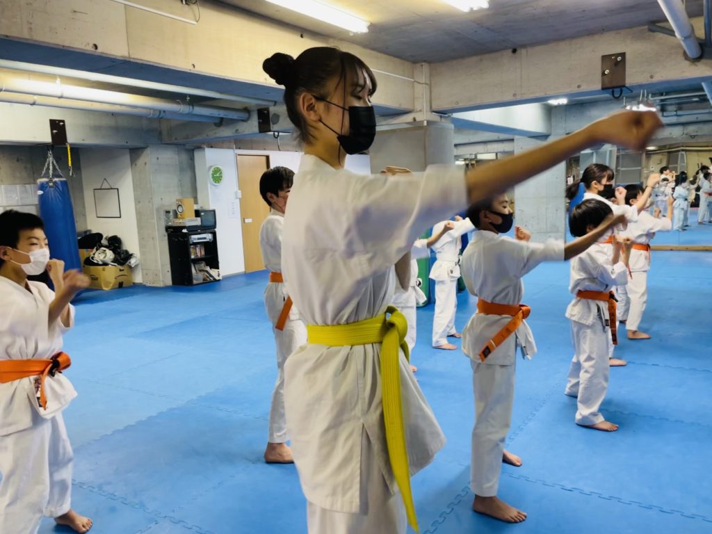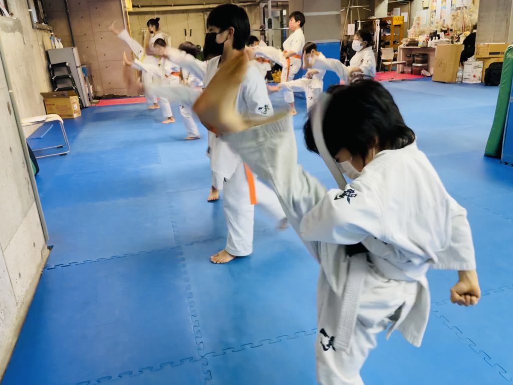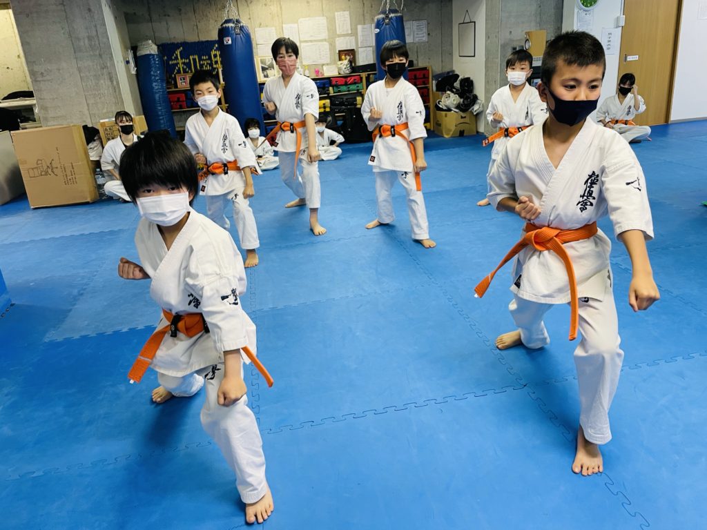 立ち方、礼法、基本、移動、型、受け返し、スパーリング、組手、補強、柔軟審査までを全員で行った。