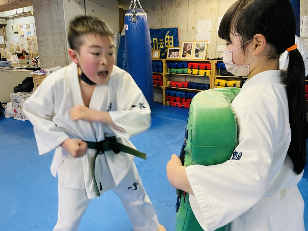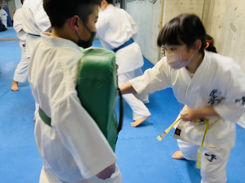 煤賀南羽さん、最近の稽古では目に見えて実力を増しているのが分かる。(仲間達や空手が大好きとの事)
