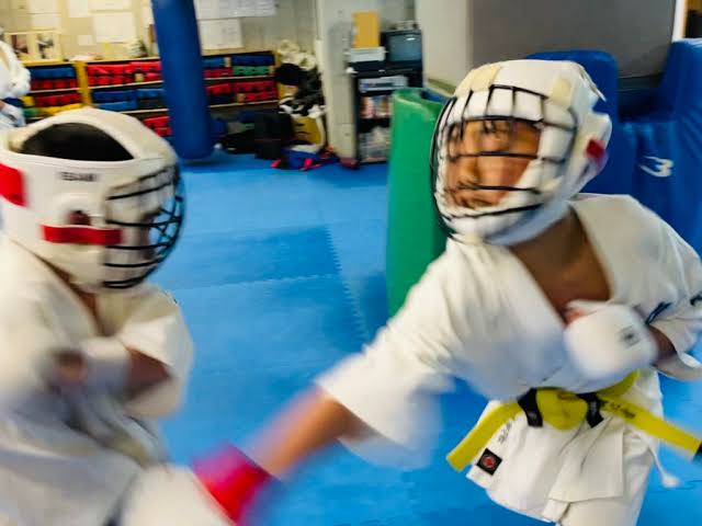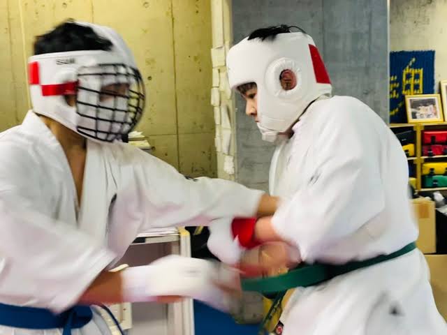 太田涼介君、藤澤万ノ亜君もガチガチの打ち合いを繰り返した。(太田君は極真祭、支部内交流試合と2週間連続の組手試合に挑む)