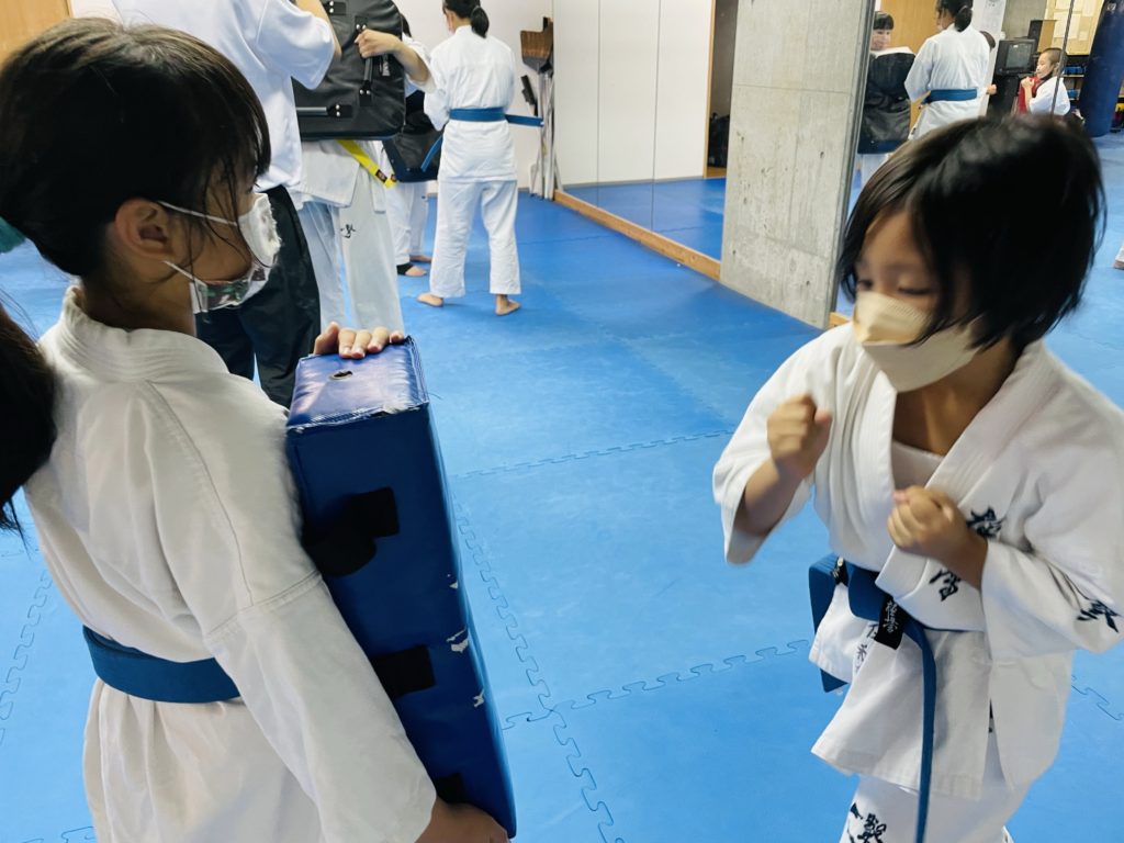 補強稽古、フィジカルトレーニング、型稽古、ミット稽古を全員で行った。