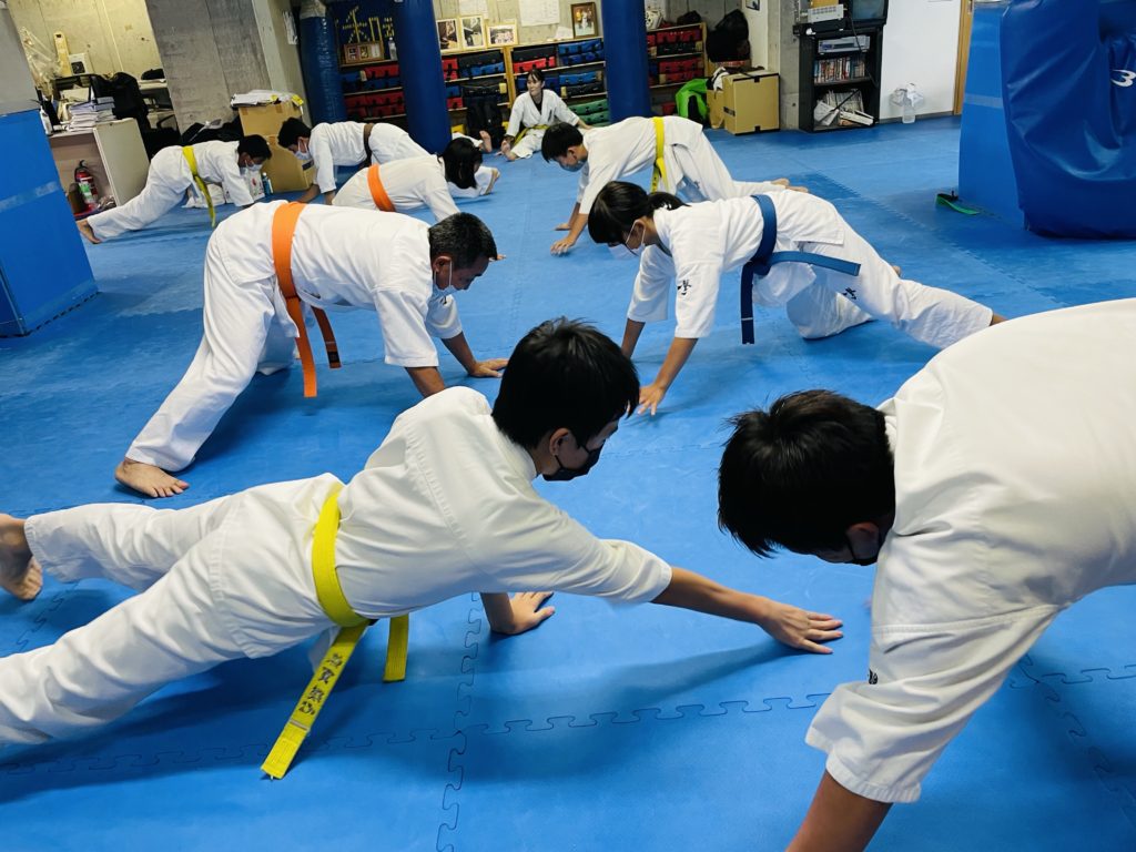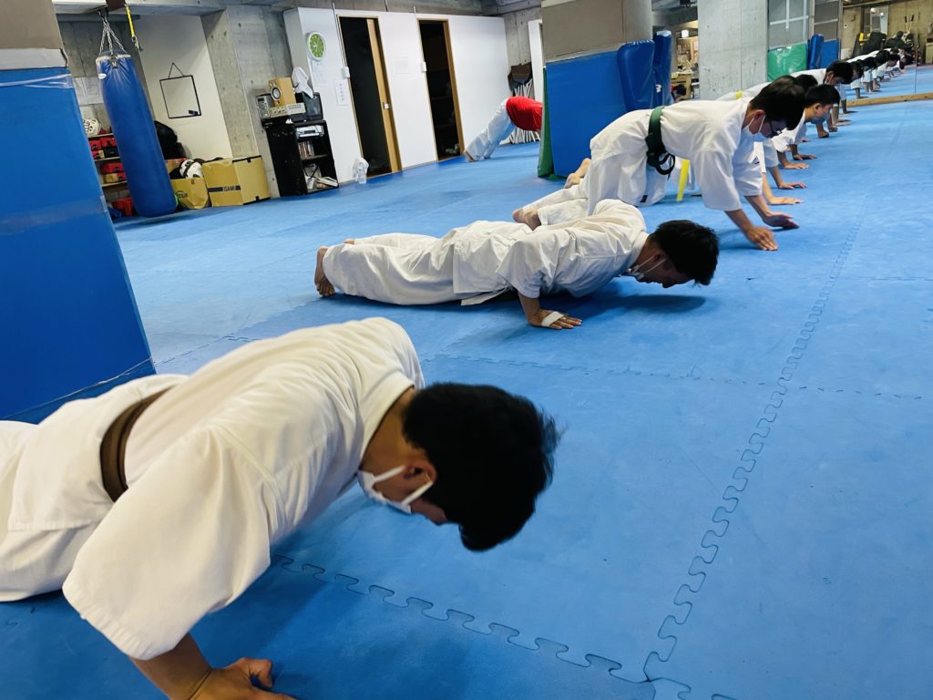 ミット打ちのコンビネーションを全員で、ひたすら反復稽古した後は、移動稽古のコンビネーションの反復まで。