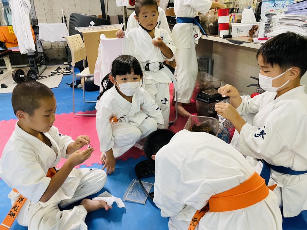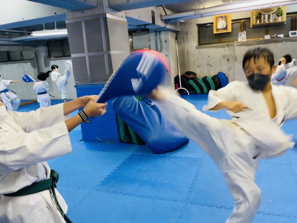 以前、後輩の網谷君が東大和道場の子供達へとプレゼントしてくれた沢山の上段用キックミット。