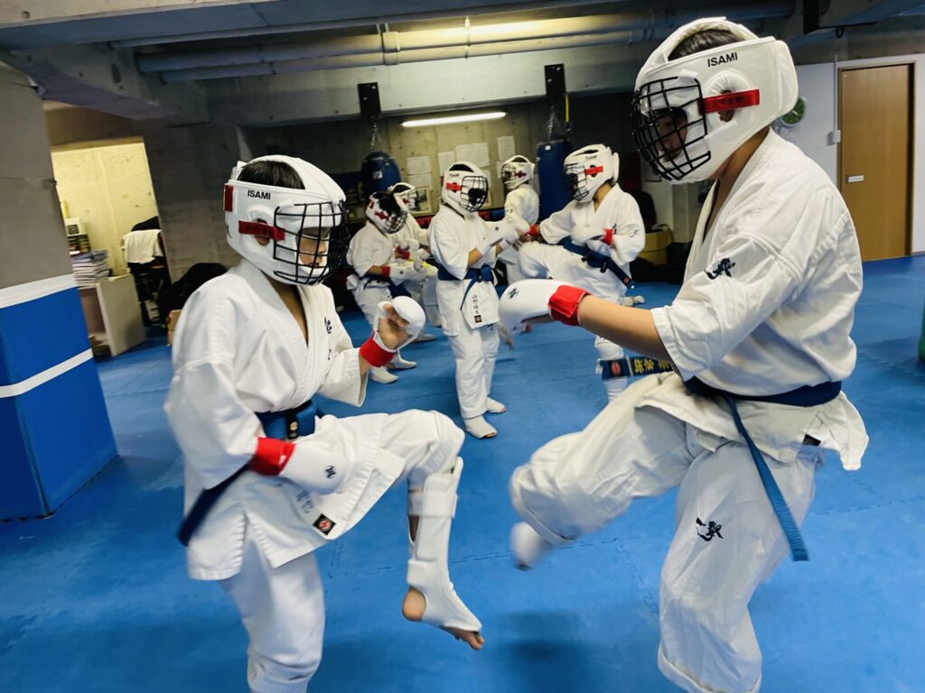 稽古中には技術的な部分に関して、稽古後は組手以外の大事な部分を彼らに説明しながら。