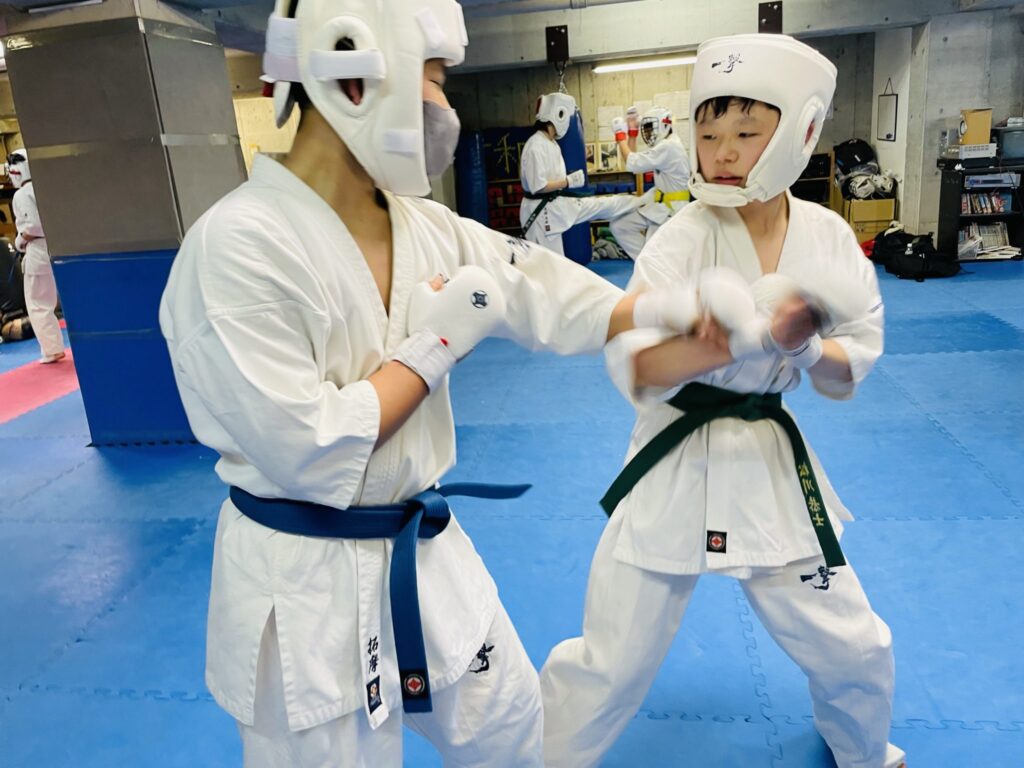松川恭士君は長年、積み重ねてきた彼ならではの組手のテクニックで後輩達と手合わせ。