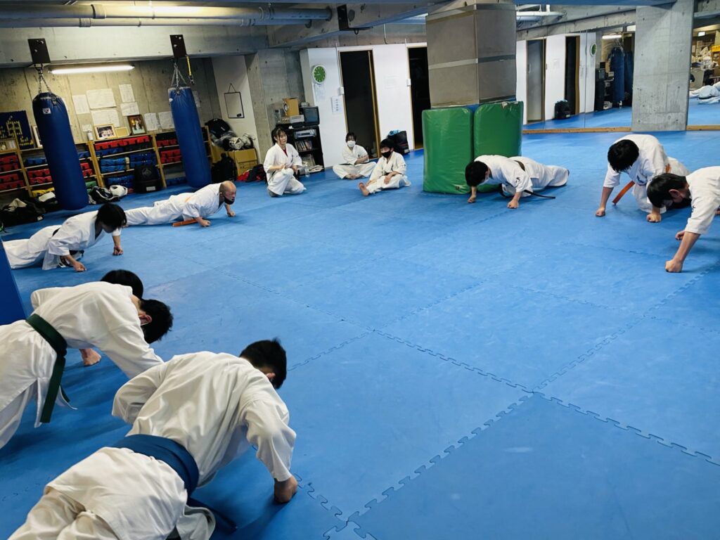 石河ローレンス君が、押しや足掛けのテクニックを織り交ぜながら、小俣さんの組手稽古をサポートしてくれていた。