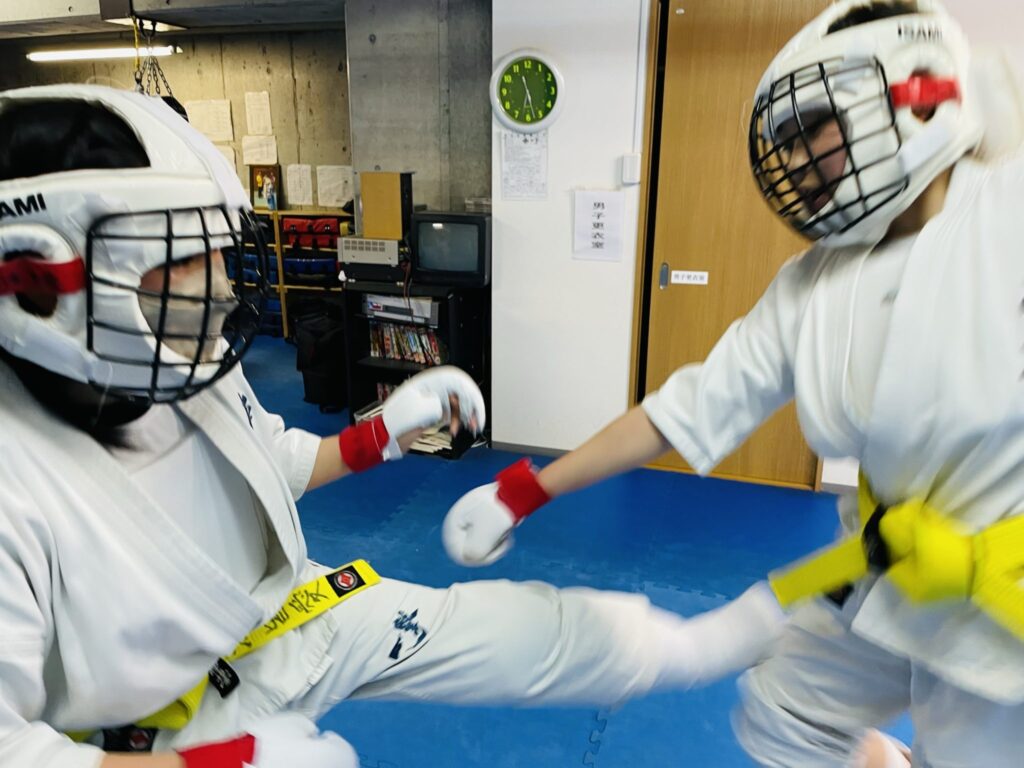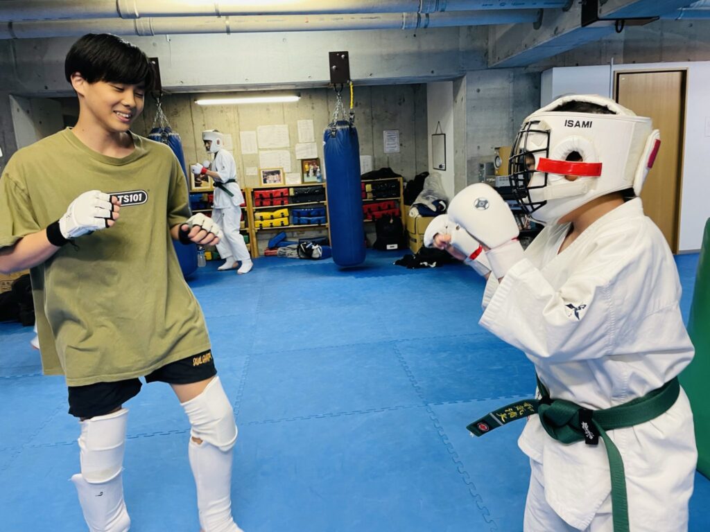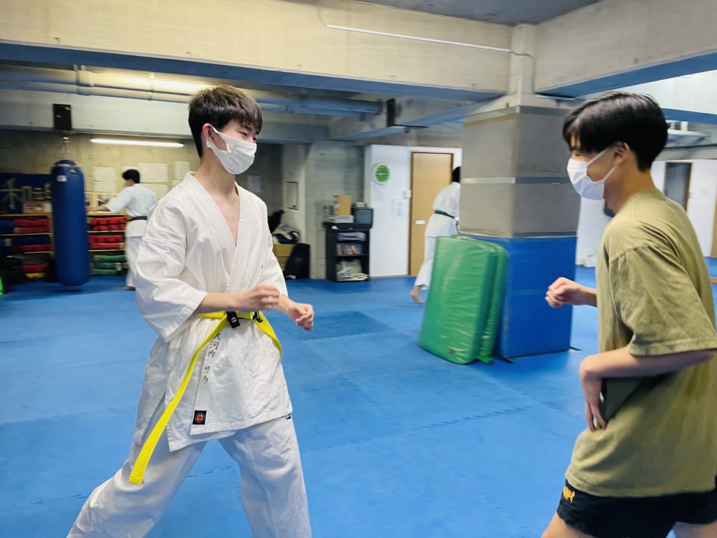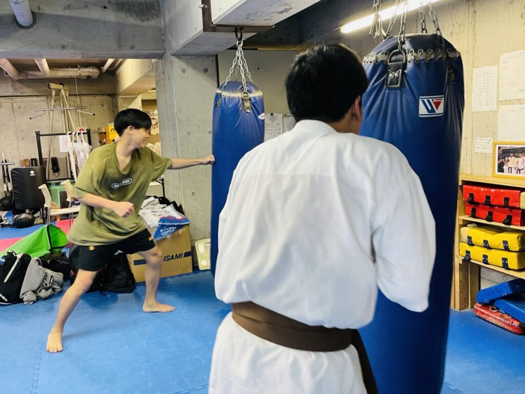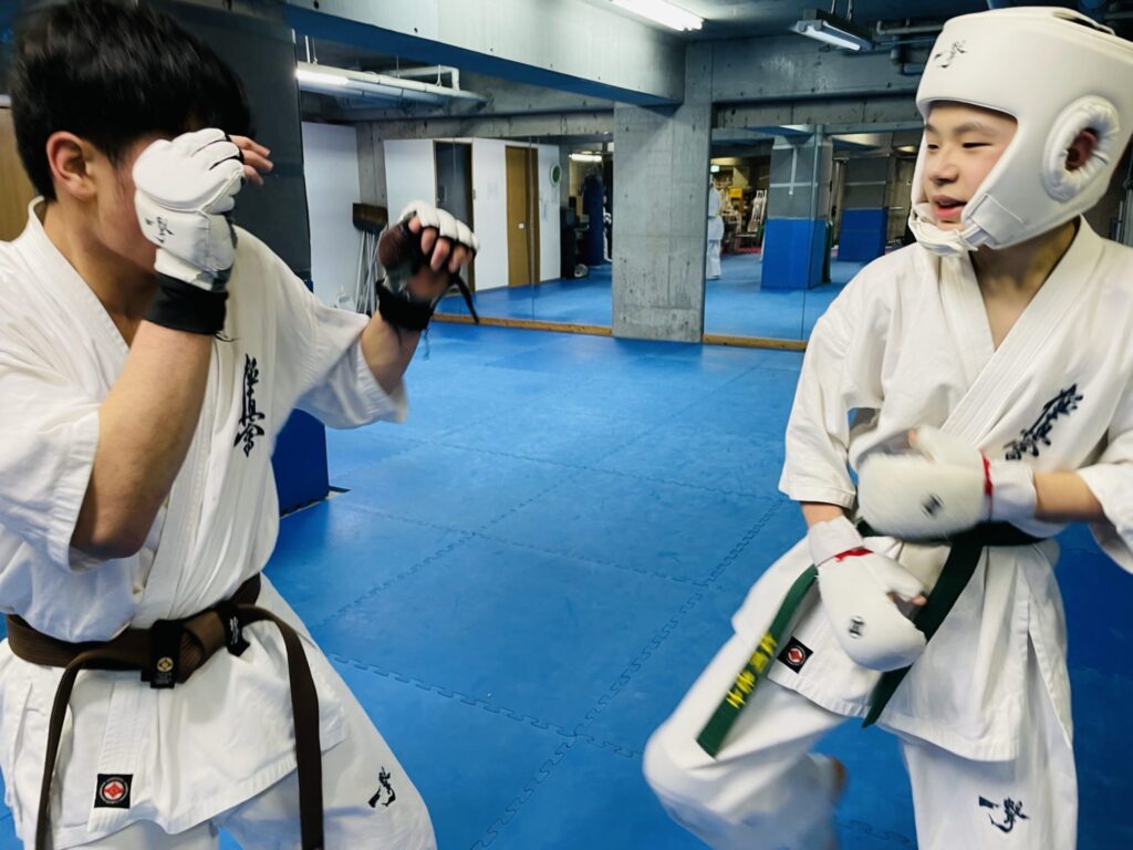 少年部時代から長年、一緒に本当に厳しい稽古を積み重ねた旧友の石河ローレンス君と、本当に久しぶりの組手で手合わせをした大坪航君。
