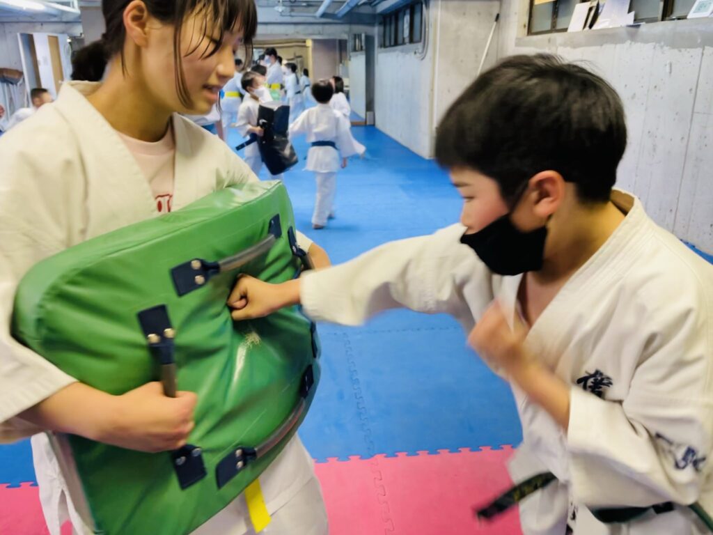 抜群のセンスで突き蹴りを叩き込んでいた、大地君。(日曜日の支部内特選クラスでは優勝を狙うとの事)
