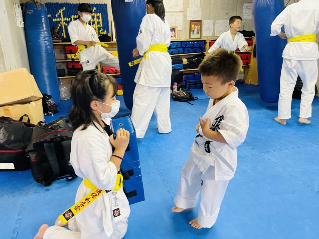 白帯の幼年部達の稽古は丁寧に。