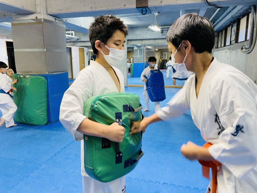 基本、移動、型稽古の後はミット打ちまで。