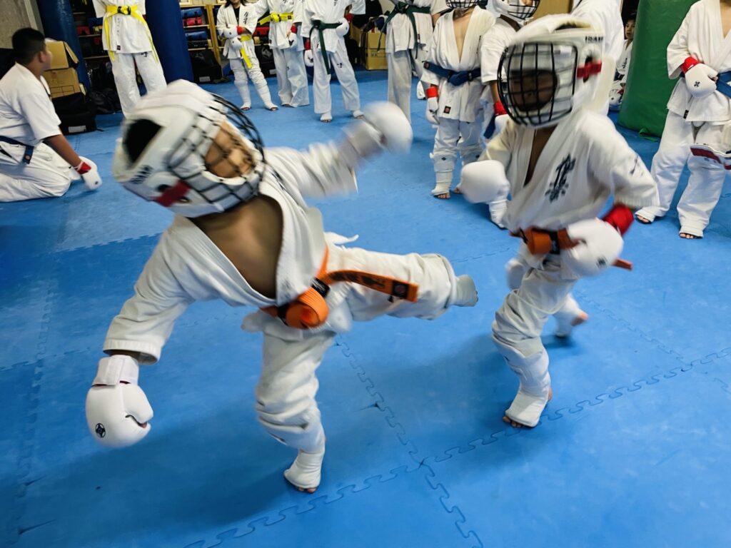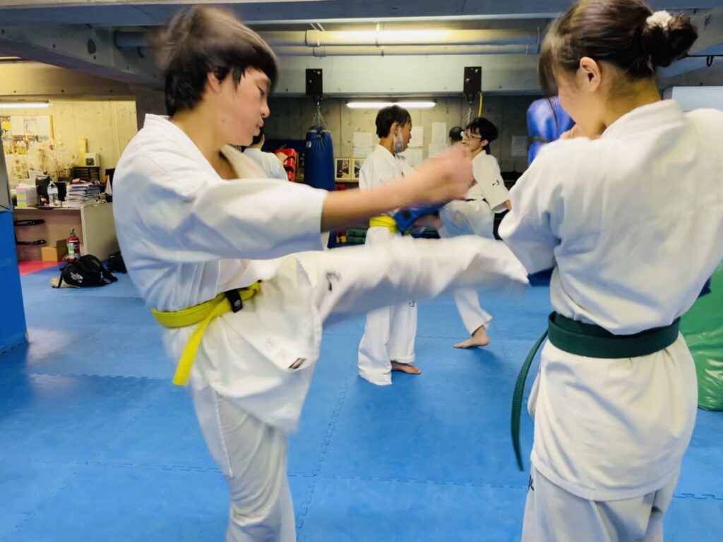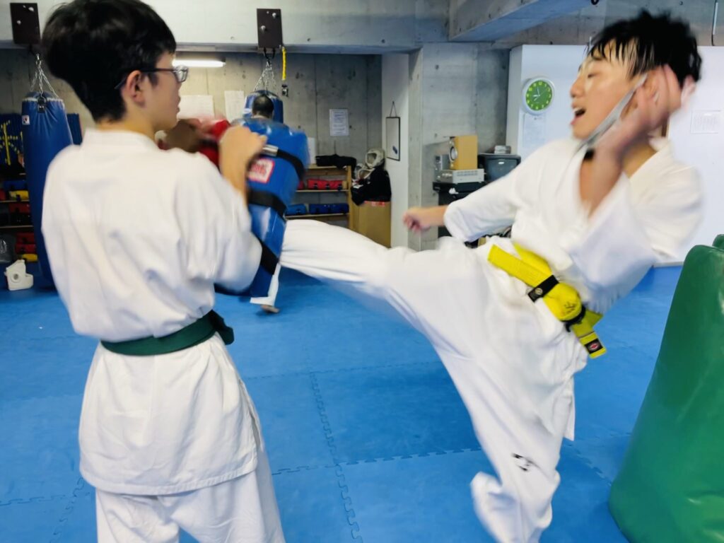 中城さんはサンドバッグ、中高生達はキックミットで追い込み稽古。