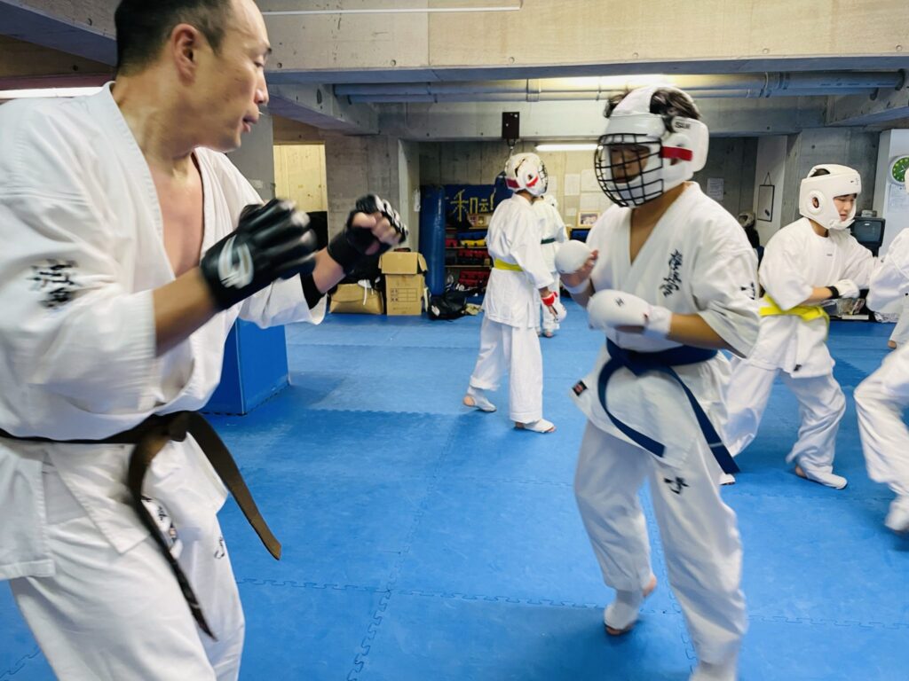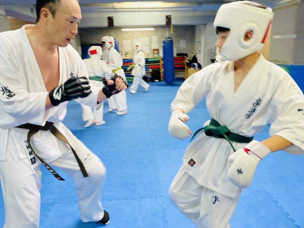 入会したばかりの師岡烈火君、真剣に稽古に取り組んでいる。