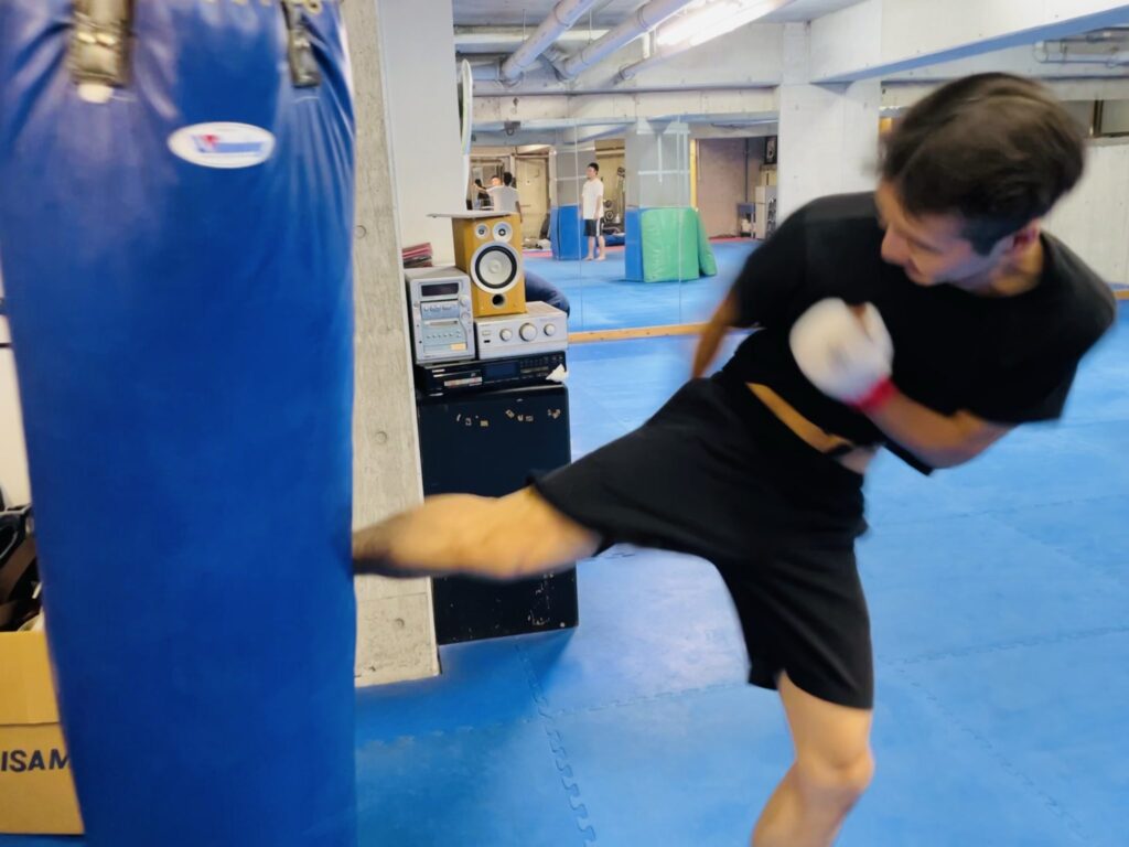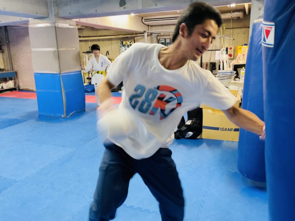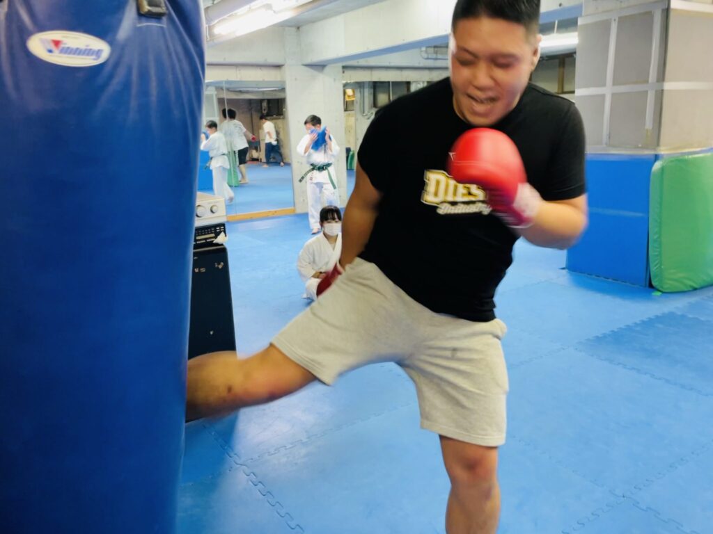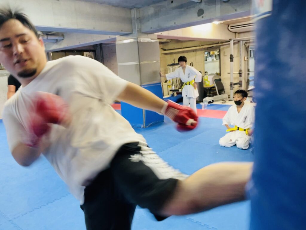 ダイナミックな突き蹴りを放ちながら、久しぶりの極真空手の稽古を堪能していた。