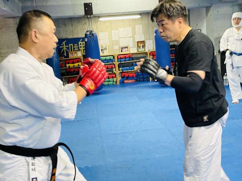 フィジカルトレーニングを繰り返してから、スパーリング、組手稽古へ。