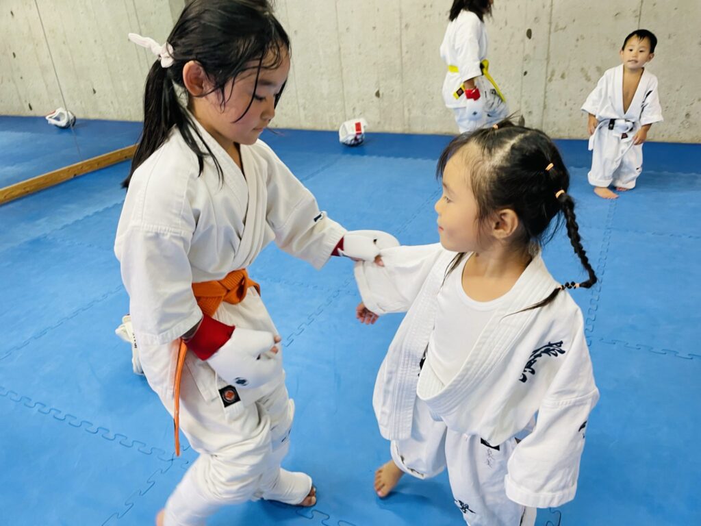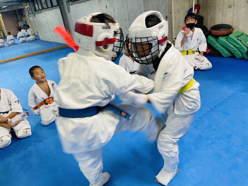ラストは儀保和香奈さんVS煤賀昂誠君の組手試合。(小学3年生達)
